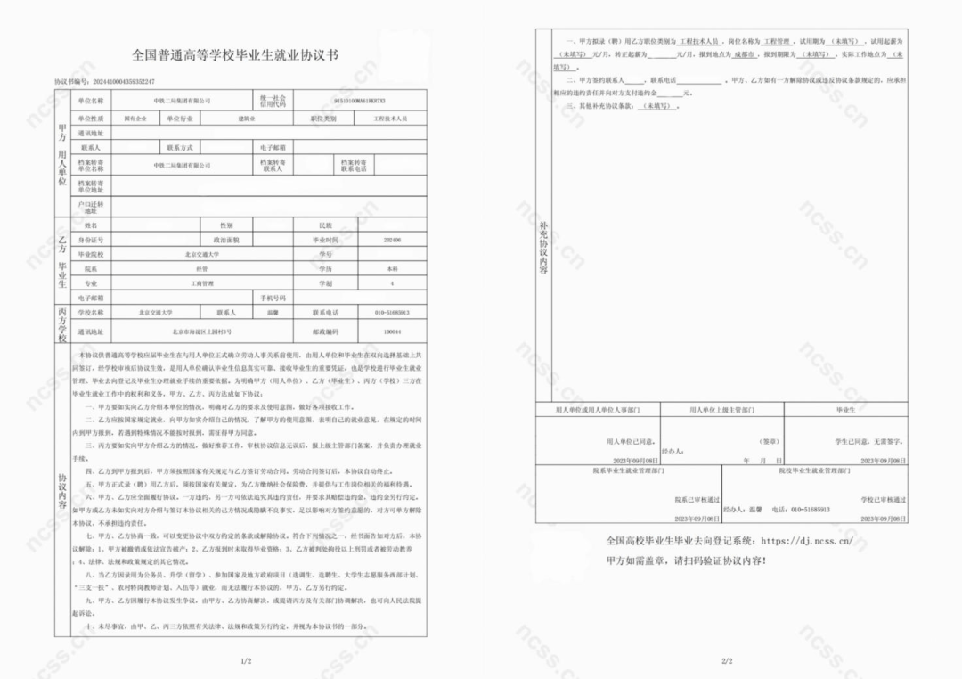 (2)“补充协议内容”栏允许三方(毕业生、用人单位、学校)另行约定各自的权利义务,毕业生可将户口、档案、违约条款、工资、休假、住房等福利待遇在补充协议内容栏中写清楚。同时需注意单位填写的补充协议条款是否侵害毕业生合法权益。